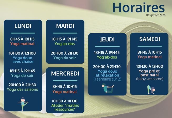 Dès le lundi 05 janvier 2026, les séances de yoga sont proposées chaque semaine.